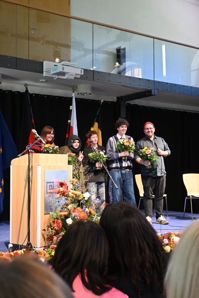 Für die musikalische Gestaltung sorgte das Akkordeonduo con:trust, bestehend aus Marius Staible und Daniel Roth. Schülerinnen und Schüler Weimarer Schulen trugen Poetry-Slam-Texte, die unter der Leitung von Andreas in der Au entstanden, vor. Sie beleuchteten darin den Wert der Einheit aus Sicht der jungen Generation.