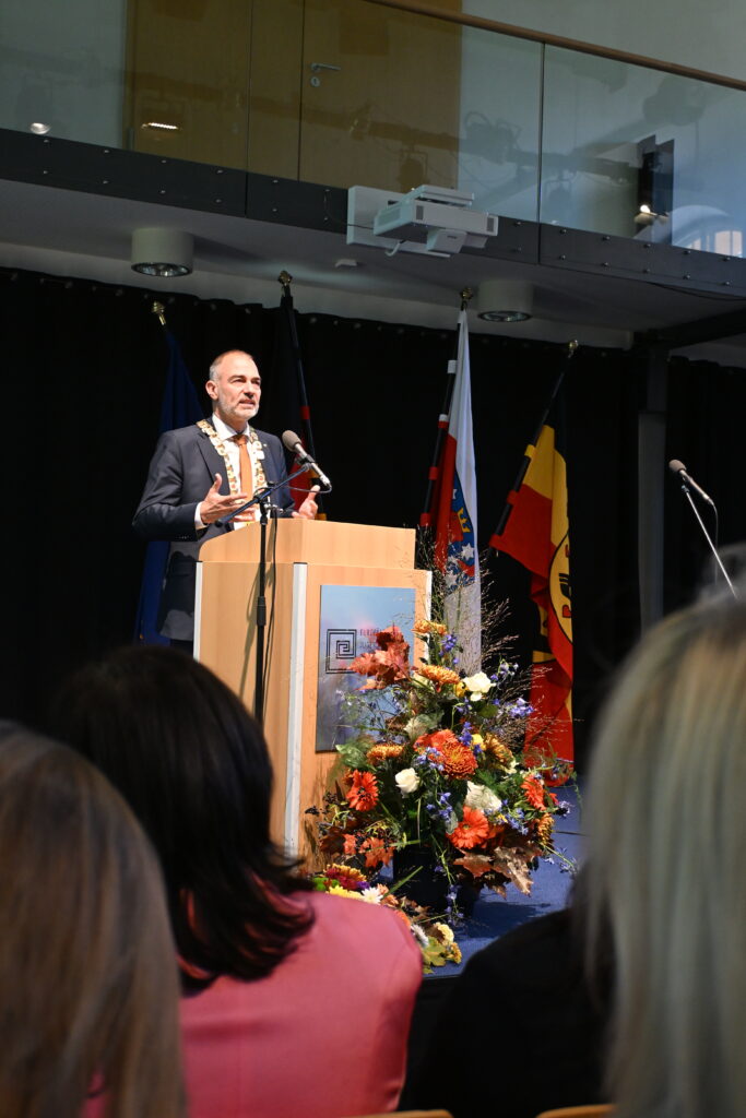 Am Freitag fand im Reithaus am Ilmpark die Festveranstaltung der Stadt zum Tag der Deutschen Einheit statt. Nach der Begrüßung durch die Vorsitzende des Stadtrats, Katrin Götz, hielt Oberbürgermeister Peter Kleine die Festrede. Er erinnerte daran, dass der Tag nicht nur ein Gedenktag ist, sondern ein Symbol für Freiheit, Zusammenhalt und die Verantwortung.